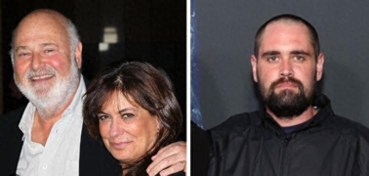 △罗布·莱纳和妻子(左),尼克·莱纳(右)